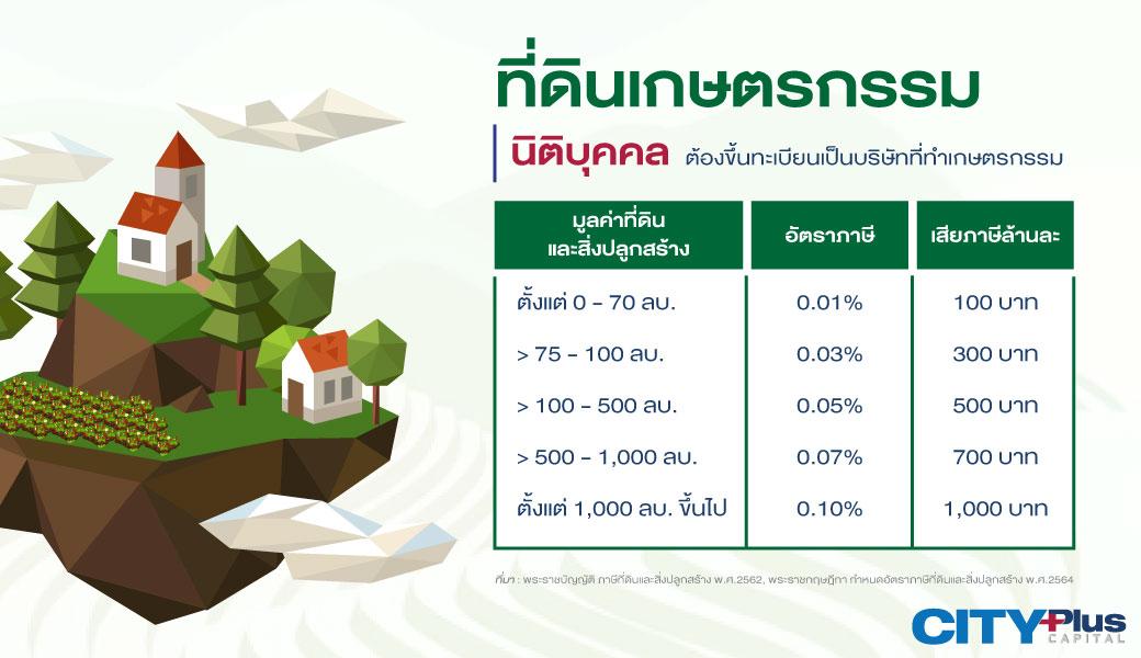 – สำหรับเจ้าของที่เป็นนิติบุคคล ก็เสียภาษีที่ดินตามอัตราปกติ